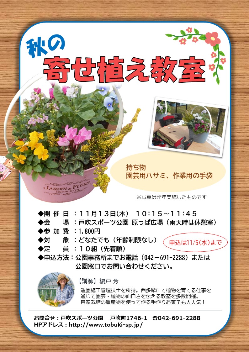 「秋の寄せ植え教室」のご案内です。