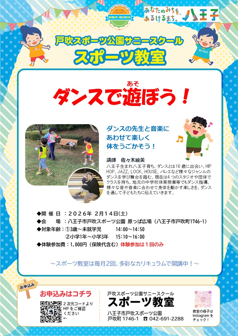 佐々木先生の「ダンスで遊ぼう!」のご案内です。