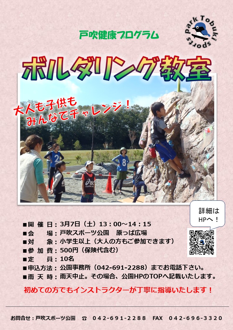 「ボルダリング教室」のご案内です。
