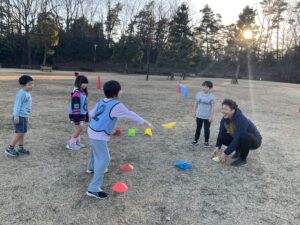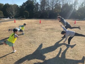 体と頭を使う運動(トレーニング)に遊びながら挑戦しました。