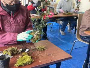 先生の説明を聞いた後は、それぞれのセンスで苔玉を仕上げていきます。