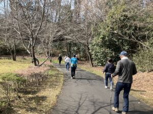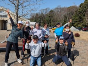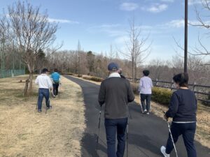 ストレッチの後はノルディックウォーキングを行いました。
