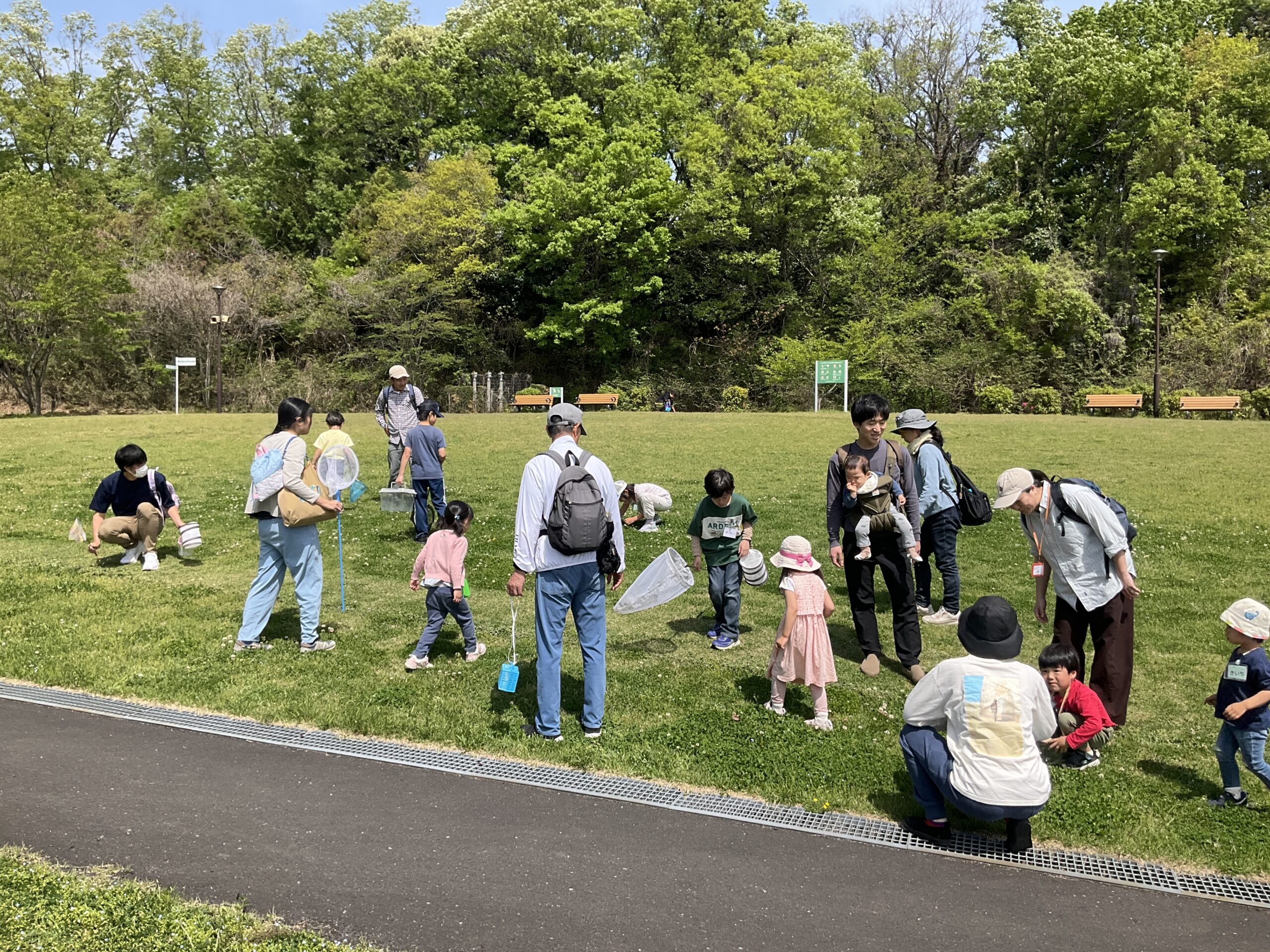 始まって早速原っぱの虫たちを探しはじめます。